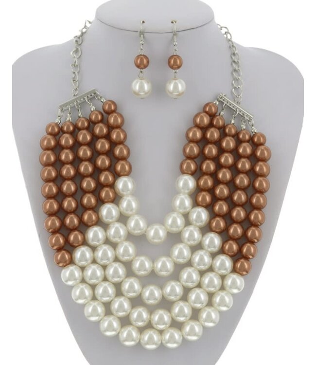 Always Good Pearl Necklace Set - Brown