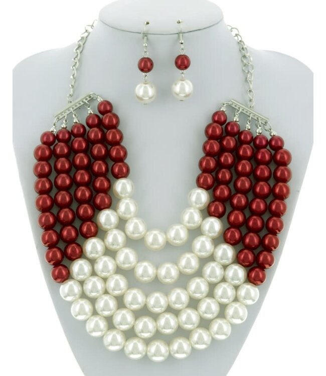 Always Good Pearl Necklace Set - Red