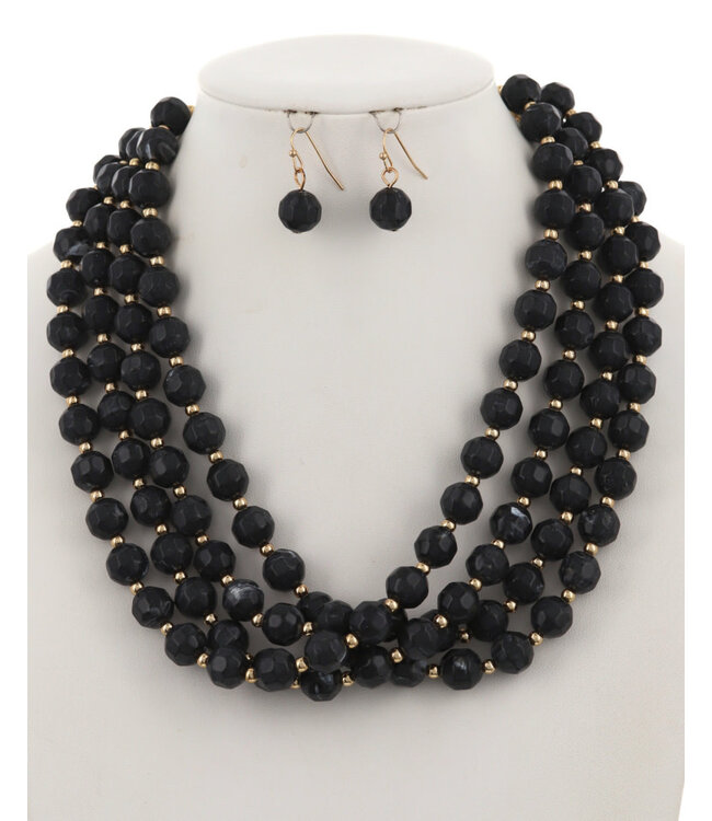 Beaded Bliss Necklace Set - Black