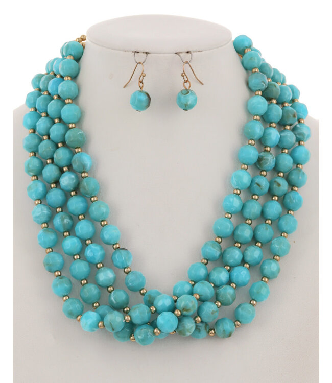 Beaded Bliss Necklace Set - Turquoise