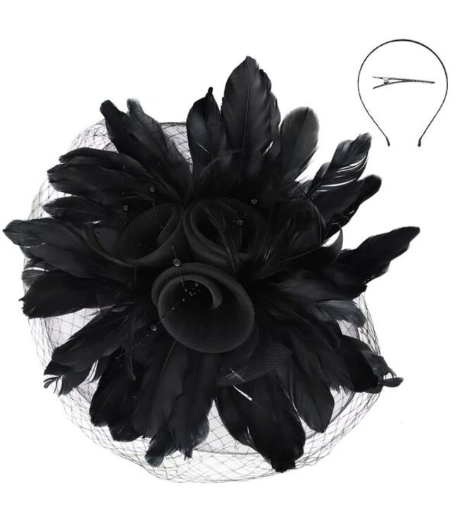 FEATHER BLOOM FASCINATOR - BLACK
