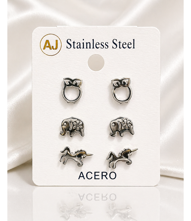 Ellie Girl Stainless Steel 3 Pair Knob Set