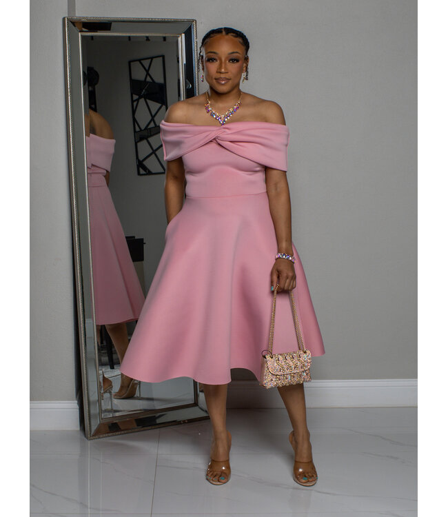 FRESH START OFF SHOULDER DRESS - PINK