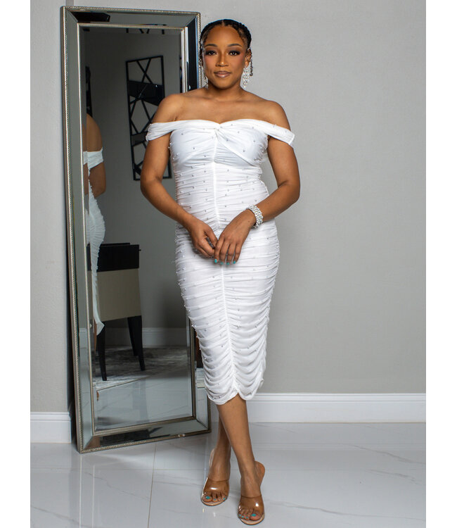 GOOD TIMES PEARL OFF SHOULDER DRESS
