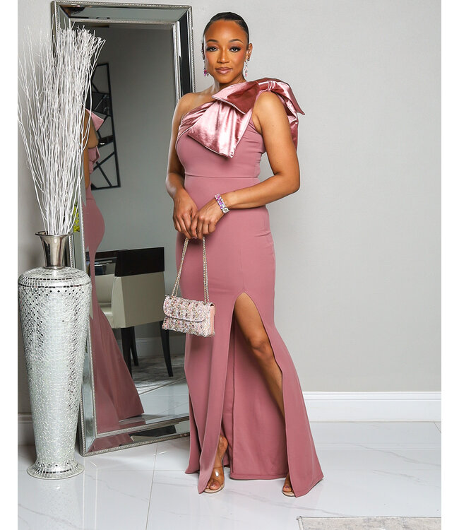 LIKE A LADY SATIN BOW ONE SHOULDER DRESS