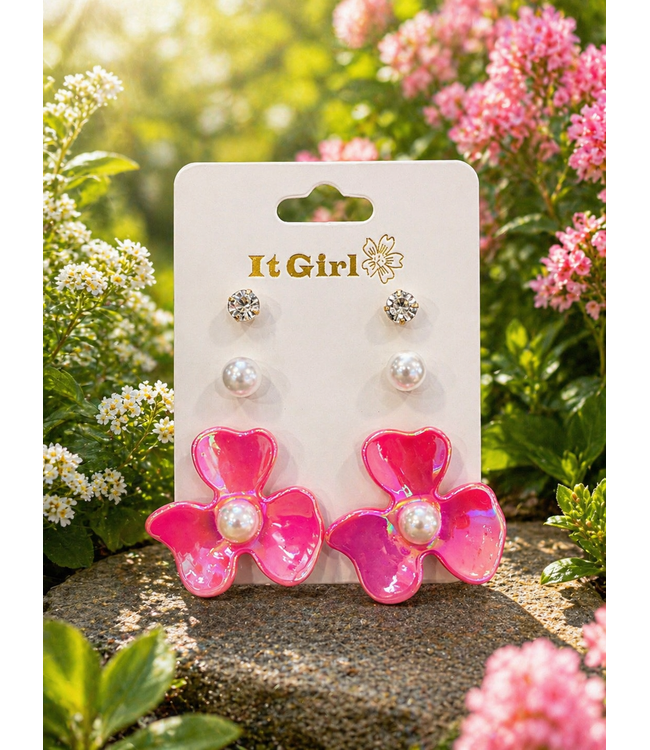 MAGICAL PETALS 3 PAIR EARRING SET - FUCHSIA