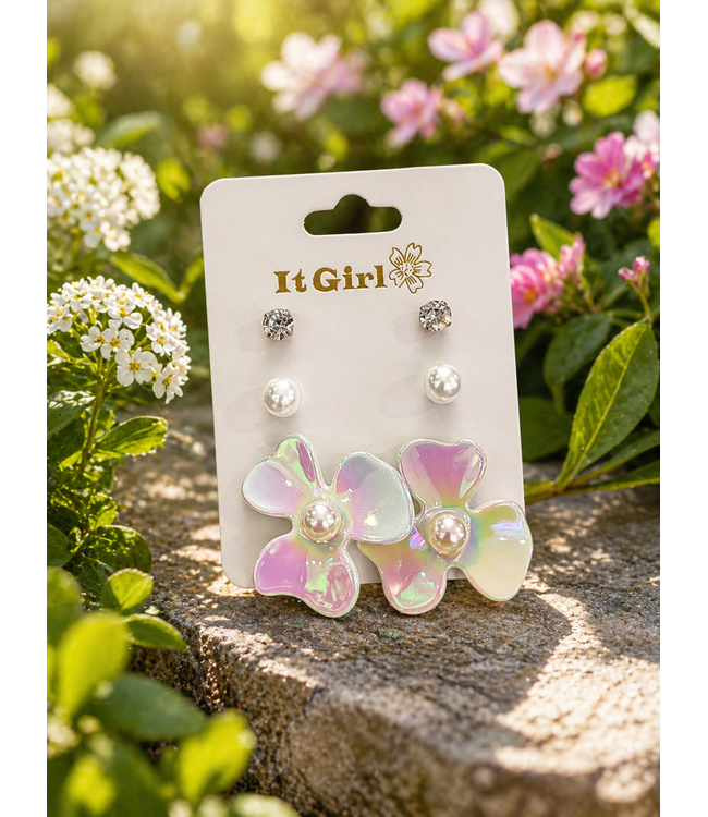 MAGICAL PETALS 3 PAIR EARRING SET - WHITE