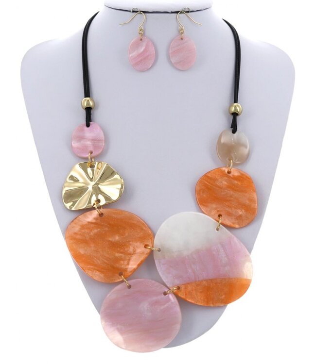 Orange Sherbet Necklace Set - Orange
