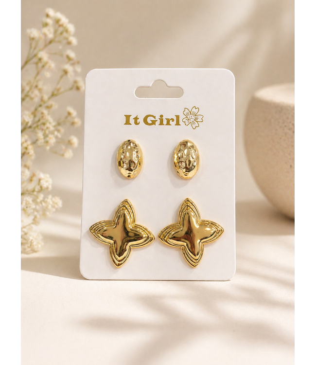 SPECIAL TREATMENT 2 PAIR EARRING SET - GOLD