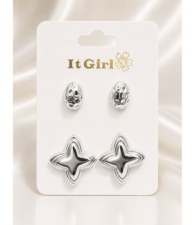 SPECIAL TREATMENT 2 PAIR EARRING SET - SILVER