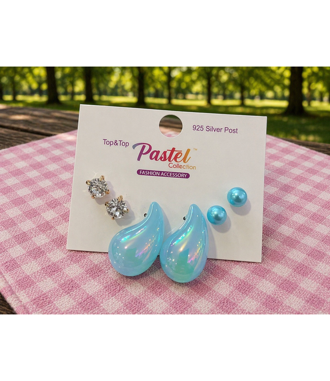 Step It Up 3 Pair Earring Set - Aqua