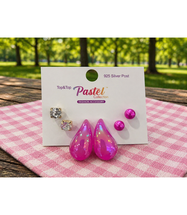 Step It Up 3 Pair Earring Set - Fuchsia