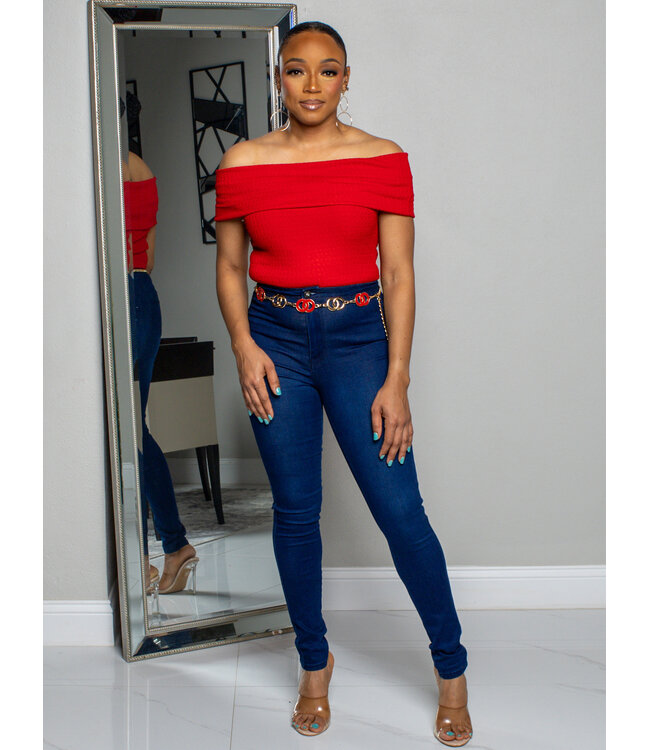 SUCH A SIMPLE GIRL OFF SHOULDER TOP - RED